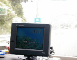時速50キロで交差点の方向変換、曲がりくねった山間部を時速60キロで走行、有料道路での80キロ走行時においても障害物になる樹木などない限り常にアンテナの自動追尾機能は的確に衛星を捉えている。急旋回、高速走行時などにおいても画像が乱れることなく常に鮮明な映像を見ることができた。 |